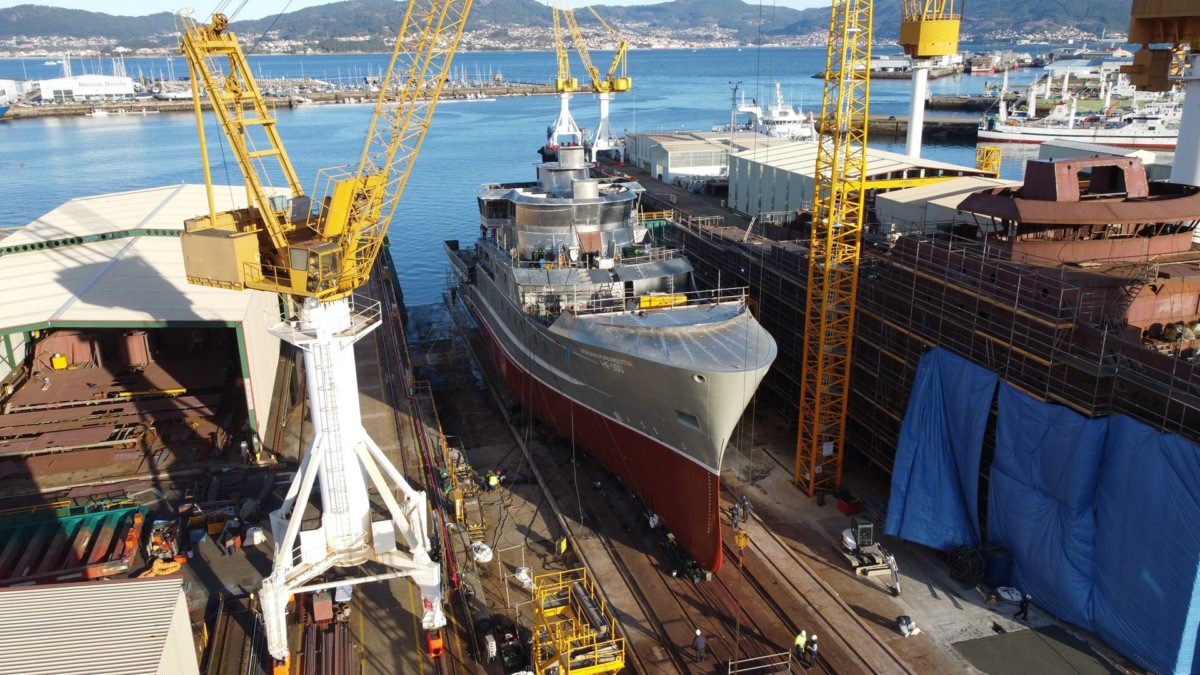 Þórunn Þórðardóttir HF-300, nýtt hafrannsóknaskip Íslendinga verður sjósett í skipasmíðastöðinni Astilleros Armón í Vigo á Spáni kl. 14.30 að íslenskum tíma í gær, 12. janúar 2024.