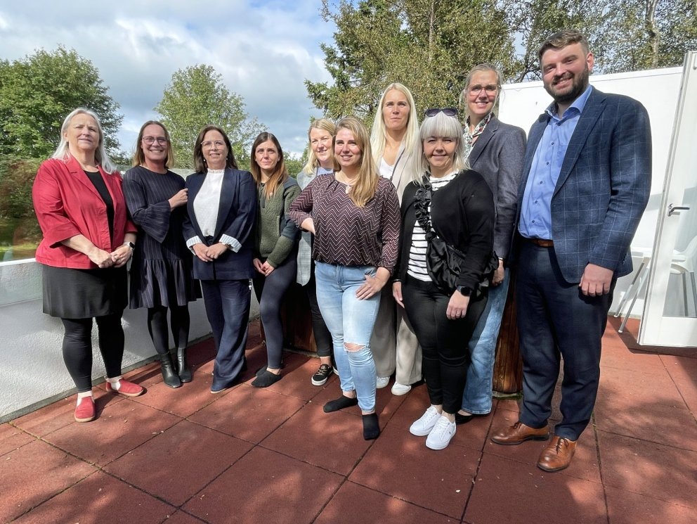 Mynd: Talið frá vinstri: Karólína Gunnarsdóttir sviðsstjóri velferðarsviðs, Vilborg Þórarinsdóttir forstöðumaður barnaverndarþjónustu Eyjafjarðar, Ingibjörg Kristín Gunnarsdóttir deildarstjóri í Sólbergi, Katrín Björnsdóttir, Anna Guðlaug Gísladóttir og Aldís Hilmarsdóttir starfsmenn á Sólbergi, Hulda Elma Eysteinsdóttir formaður velferðarráðs, Sólrún Tryggvadóttir starfsmaður á Sólbergi, Ásthildur Sturludóttir bæjarstjóri og Ásmundur Einar Daðason mennta- og barnamálaráðherra.
