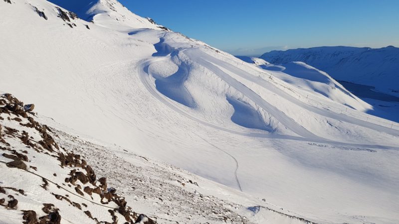 Veðrið er S 0-3m/sek, frost 8 stig og heiðskírt, færið er troðinn þurr snjór en það snjóaði aðeins í nótt svo að færið er draumur. 4 lyftur opnar og 8 skíðaleiðir eru klárar.