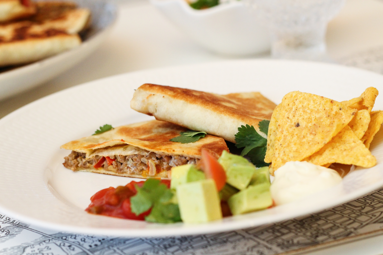 Quesadillas með nautahakksfyllingu í sweet chili rjómaosti