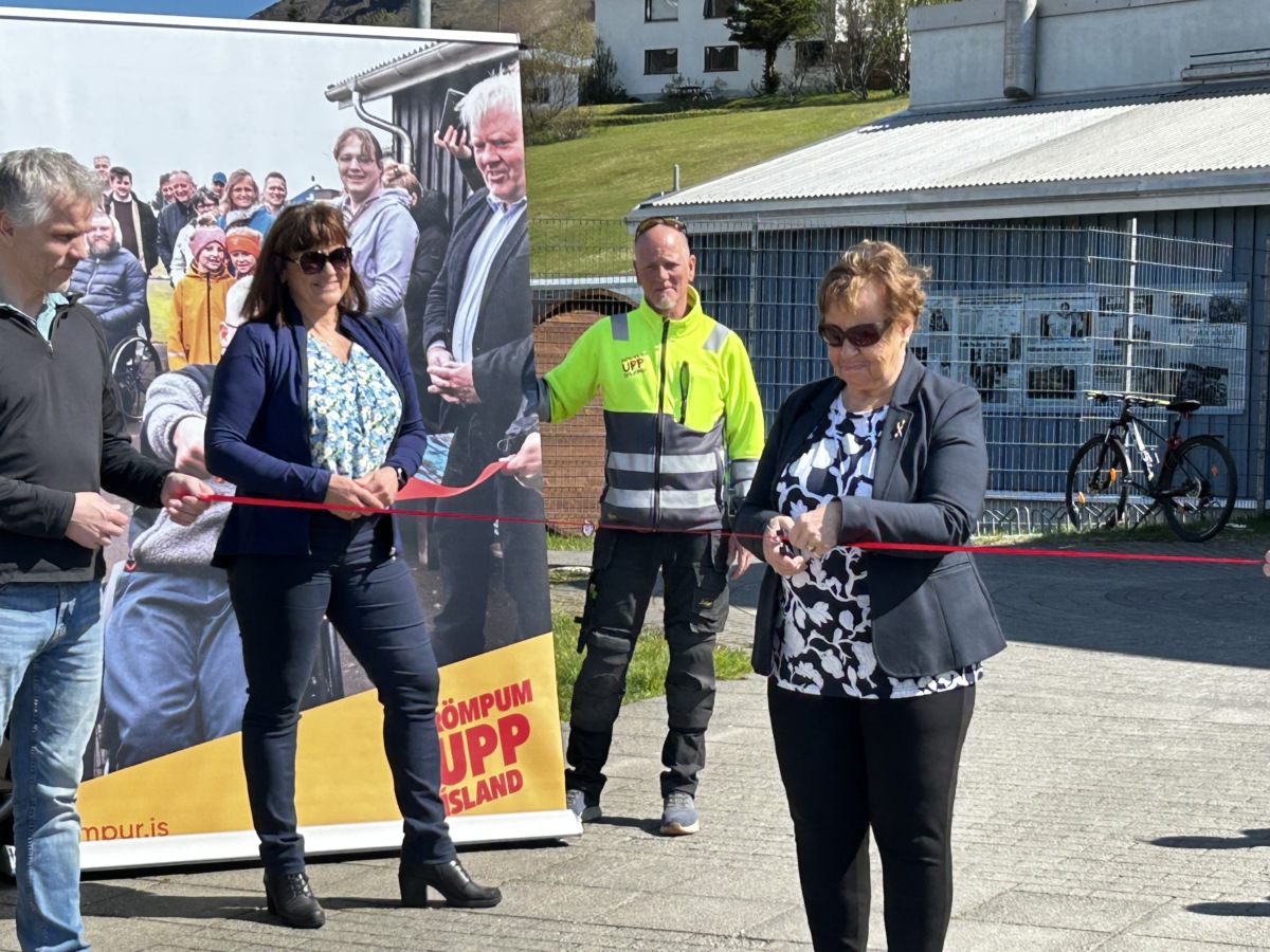 Vígsla rampsins fór fram miðvikudaginn 31. maí við Íþróttamiðstöðina. Við vígsluna sagði Sigríður Ingvarsdóttir bæjarstjóri Fjallabyggðar nokkur orð og þakkað Haraldi Þorleifssyni og hans teymi fyrir frábært framtak. Að því búnu fékk Hanna Maronsdóttir heldri-borgari og íbúi í Ólafsfirði það verðuga hlutverk að klippa á borðann og vígði rampinn þar með formlega. Fjallabyggð bauð svo gestum upp á léttar veitingar í anddyri íþróttamiðstöðvarinnar.