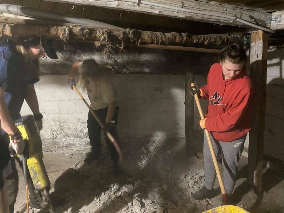 Þó að múrbrot sé ekki meðal kennslugreina í Menntaskólanum á Tröllaskaga, MTR, voru nokkrir nemendur mættir til slíkra starfa eldsnemma morguns í síðustu viku.