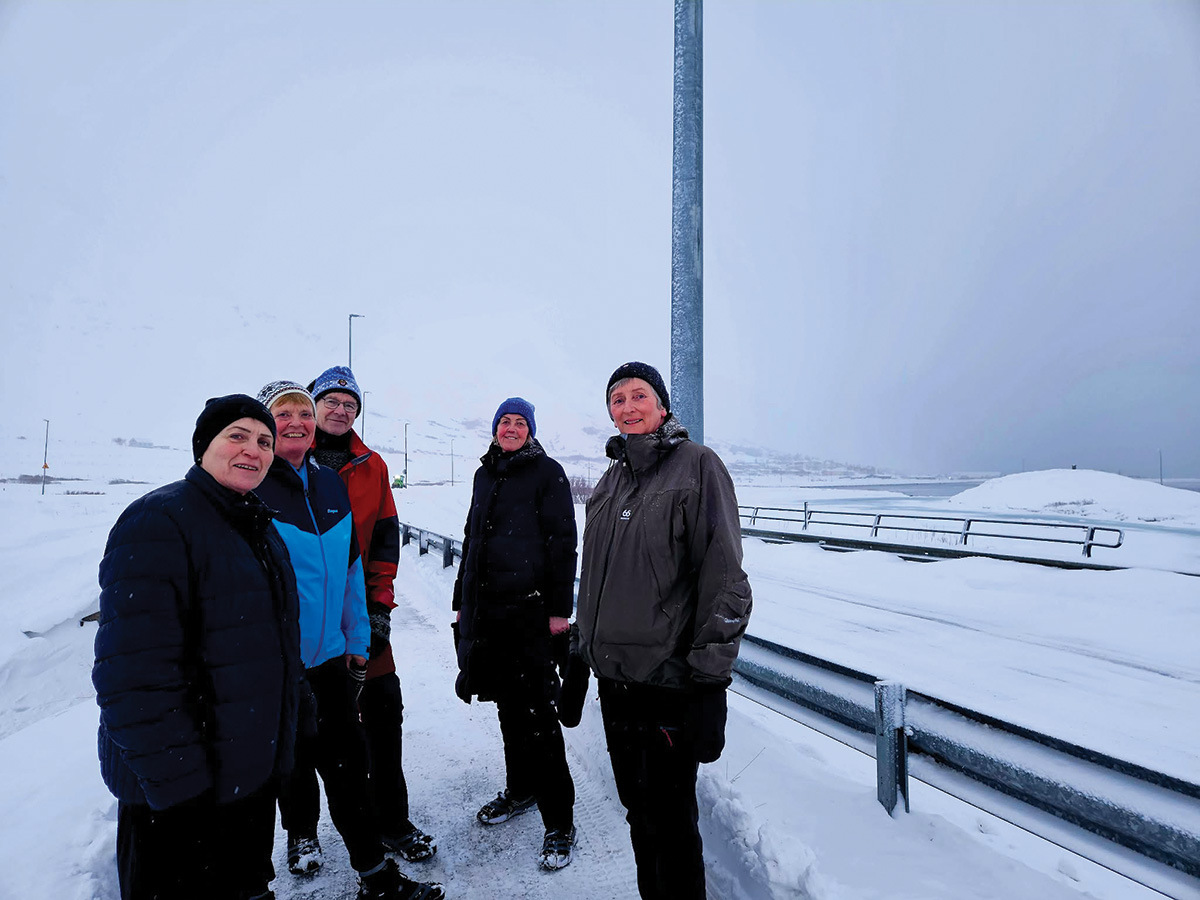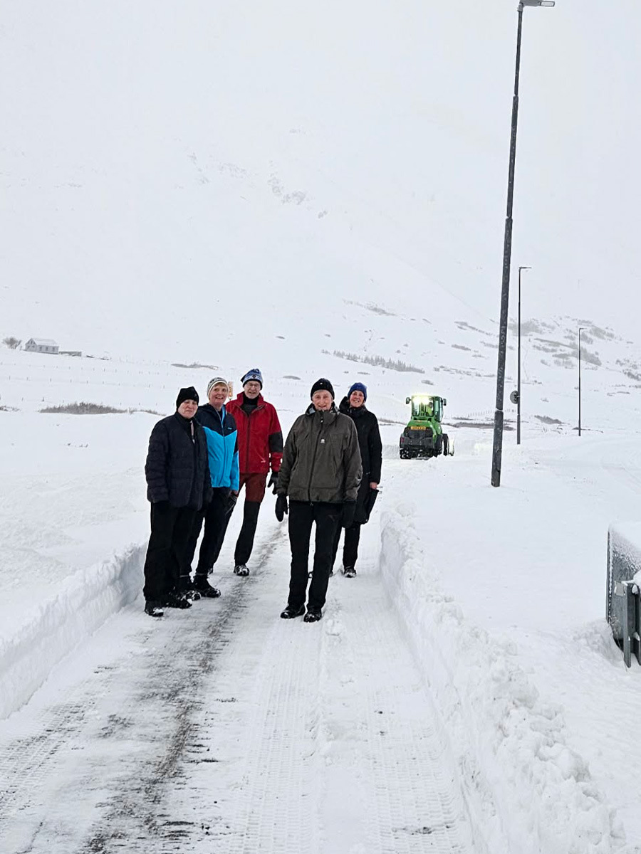 Eins og sjá má á meðfylgjandi myndum láta þátttakendur ekki veður eða færð stoppa sig og eru göngurnar stundaðar í öllum aðstæðum. Þrátt fyrir snjóþunga hafa göngustígar verið vel færir og á það ekki síst að þakka snyrtilegum og samviskusömum snjómokstri. Þar á verktakafyrirtækið Bás sérstakar þakkir skildar fyrir vinnu sína á Siglufirði, sem auðveldar göngufólki að halda sinni rútínu óháð veðri og færð.