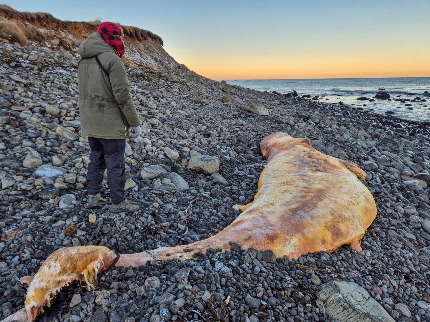 Dróni var notaður til aðstoðar við leitina og rakst hópurinn á hvalreka.