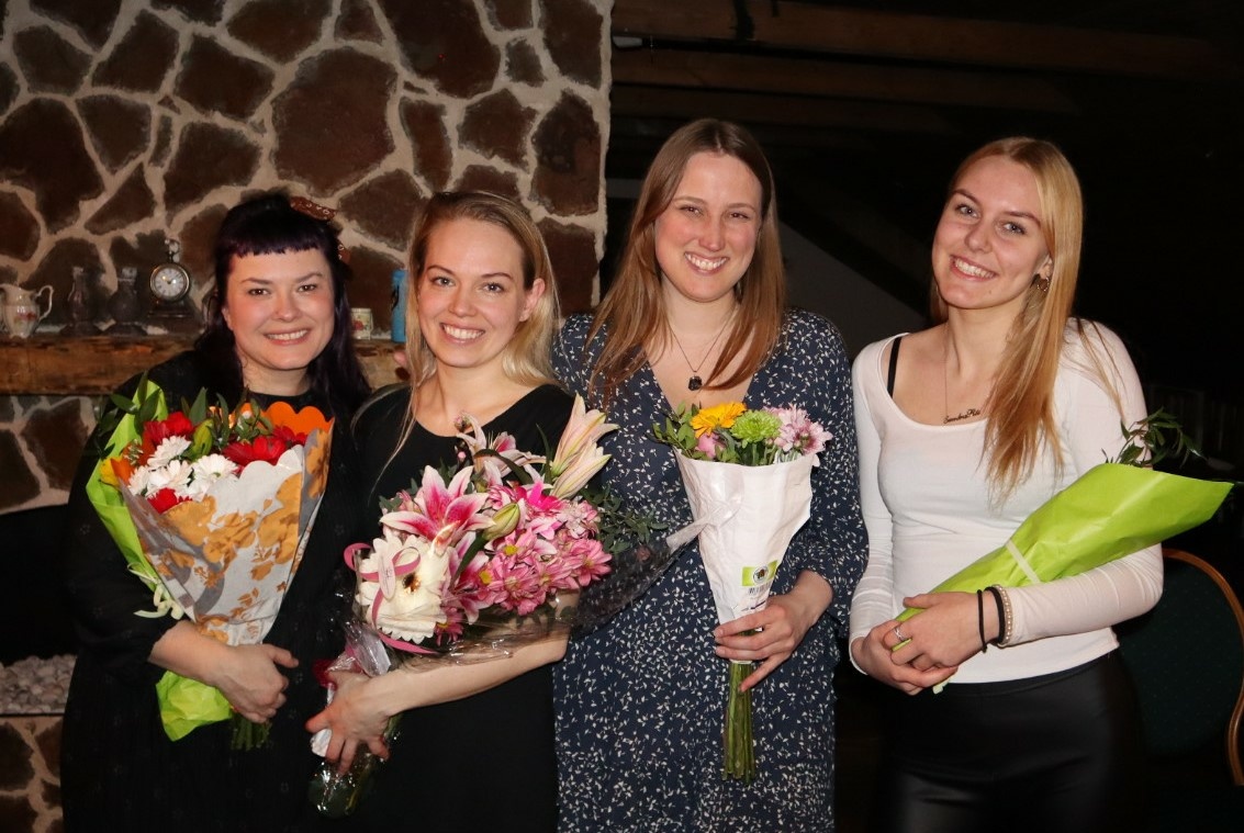 Ljósmynd: Margrét Arnardóttir harmoníkuleikari, Halldóra Guðjónsdóttir leikkona, Andrea Elín Vilhjálmsdóttir höfundur og leikstjóri, Sandra Rós Bryndísardóttir sér um sýningakeyrslu.