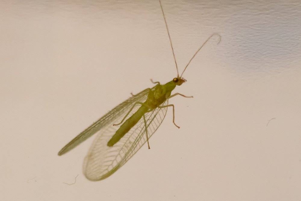 Var í mestu makindum að stinga upp í mig AB-mjólkinni þegar ég sé skyndilega eitthvað koma flögrandi að andlitinu á mér og stefndi í sömu átt og skeiðin. Tókst mér með snarræði að skella í lás. Þá flögraði vinkonan í átt að ljósinu yfir eldhúsborðinu og tyllti sér þar. Þá var hægt að virða hana betur fyrir sér.