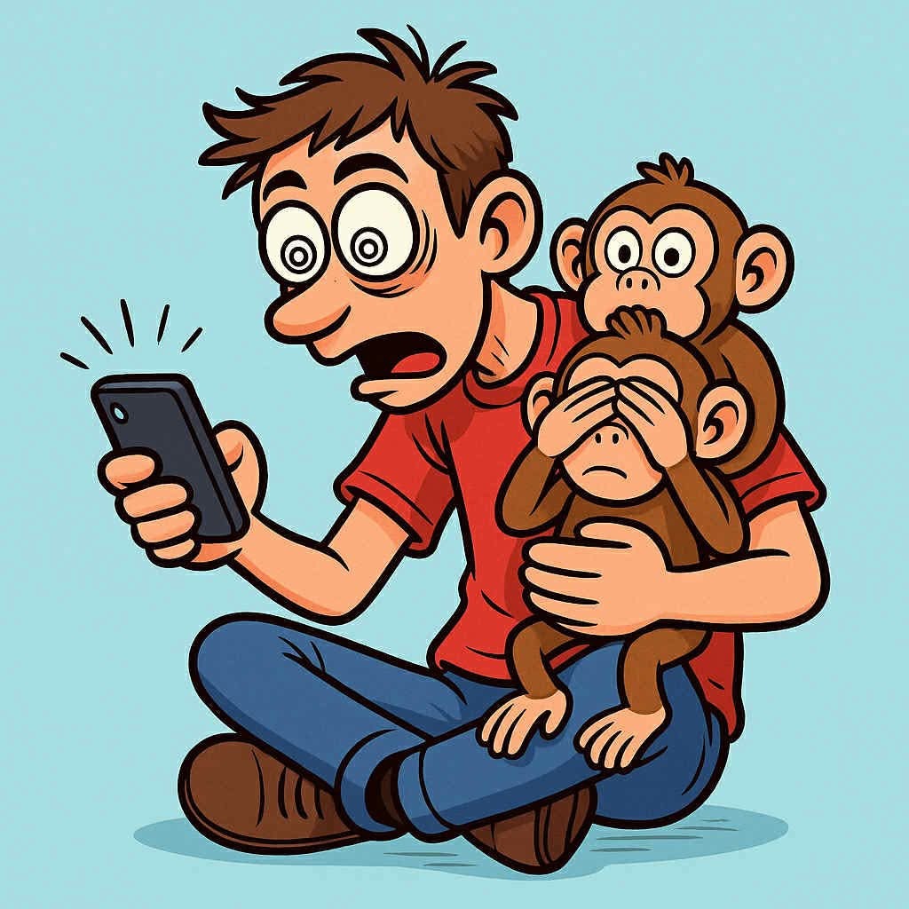 En áhrifin ná líka til samskipta. Þegar athyglin beinist niður í lófa, minnkar augnsamband, hlustun verður brotakennd og mannleg nánd veikist. Margir eru ómeðvitað farnir að líkja eftir hinum þremur frægu öpum: sjá ekki, heyra ekki, tala ekki — nema í gegnum skjá.