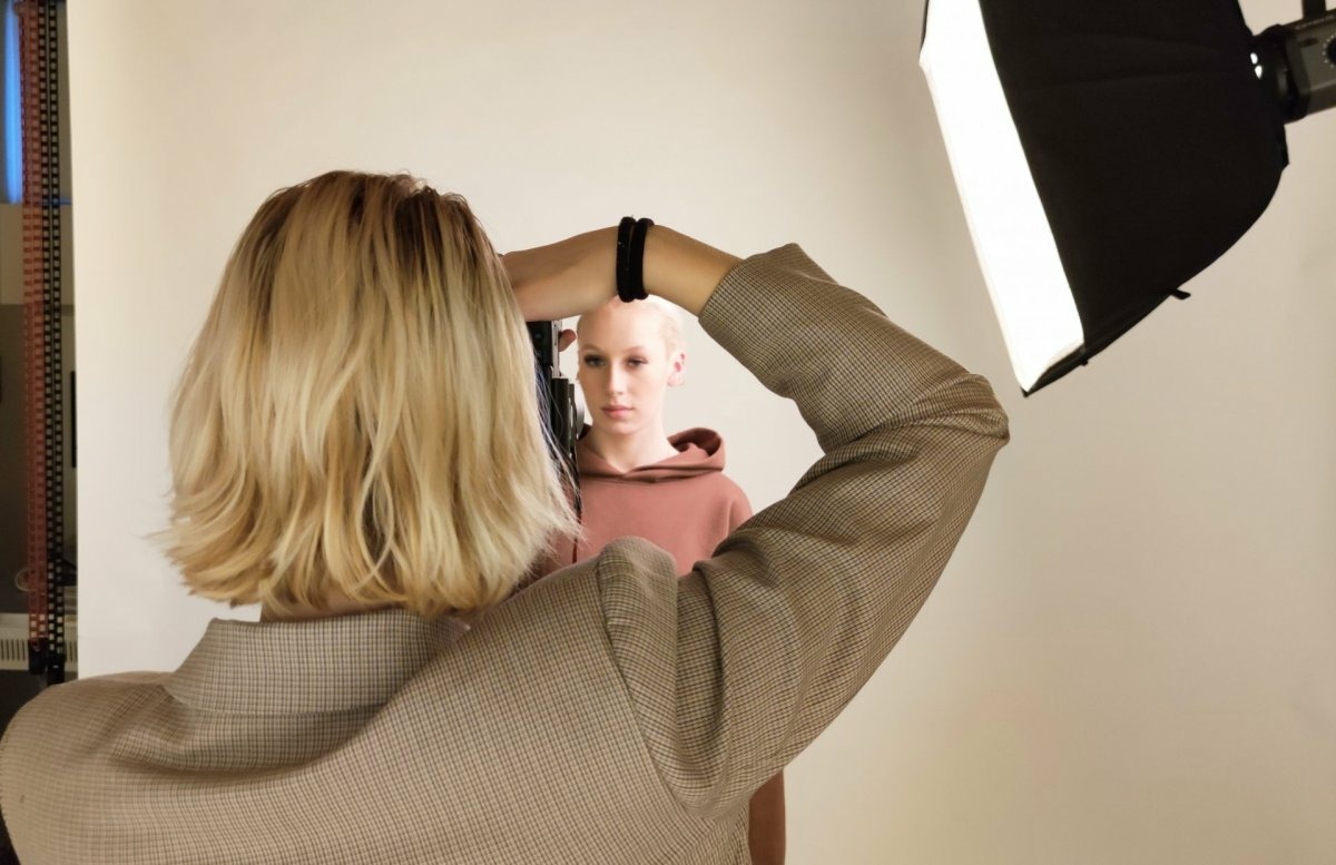 Forsíðumynd/ Amalía Þórarinsdóttir myndar Margréti Brynju Hlöðversdóttur í stúdíói skólans. Mynd: SMH.