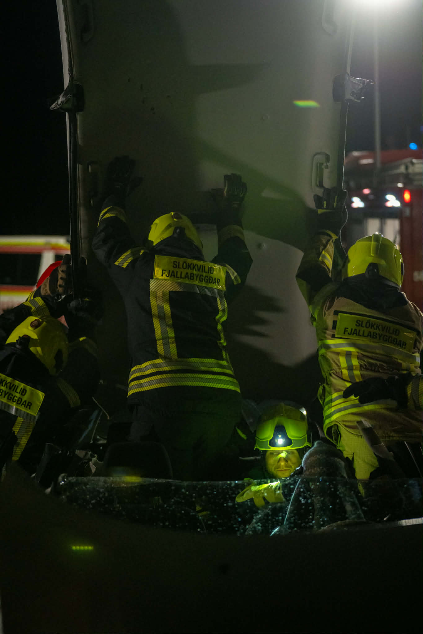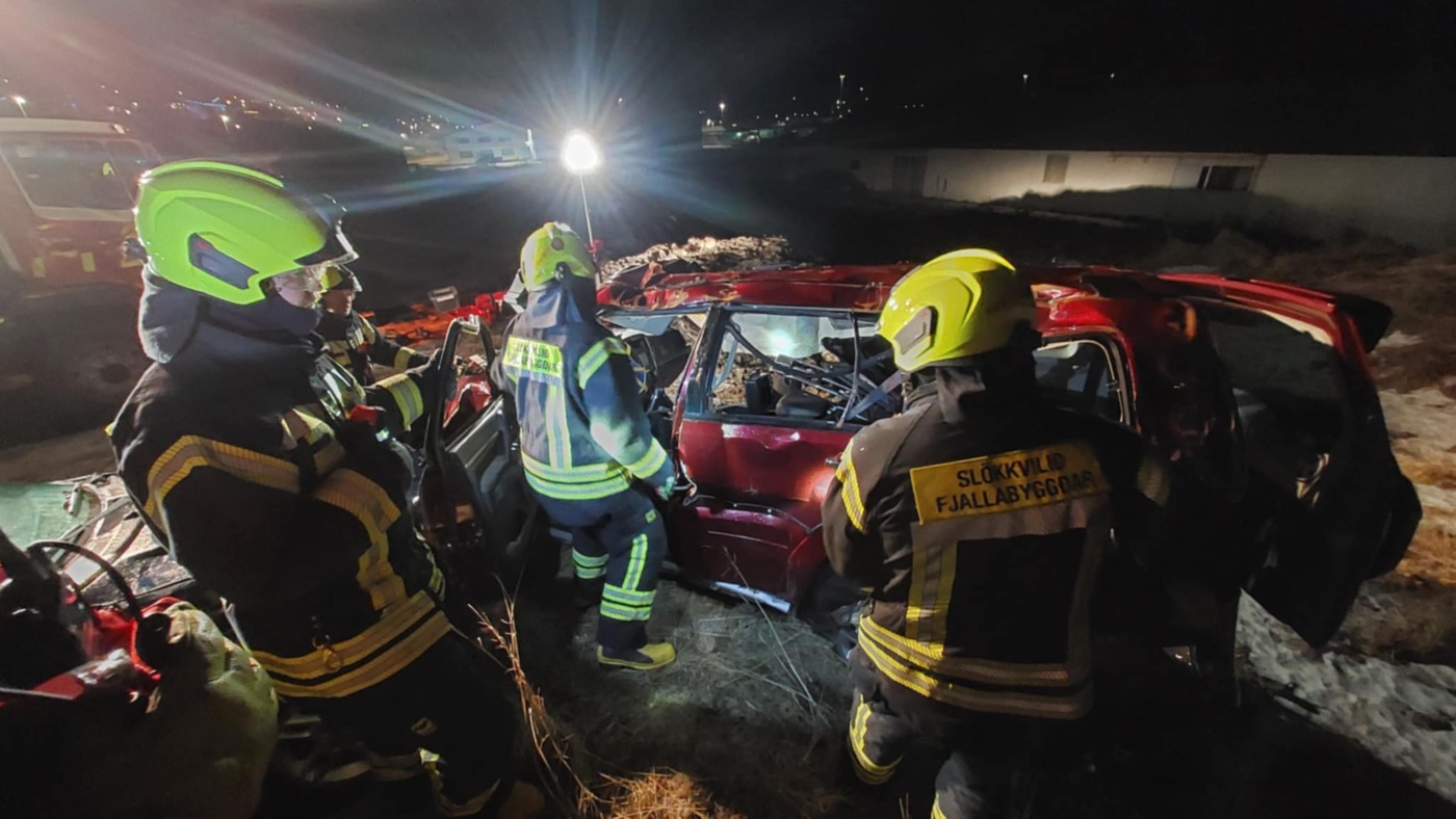 Á Siglufirði tóku sjúkraflutningamenn frá HSN þátt í æfingunni en þeir æfðu verkferla þegar ná þarf slösuðum einstaklingum út úr ökutækjum. Unglingadeild björgunarsveitanna hjálpaði til og komu tveir unglingar til að leika ökumann og farþega í ökutæki.