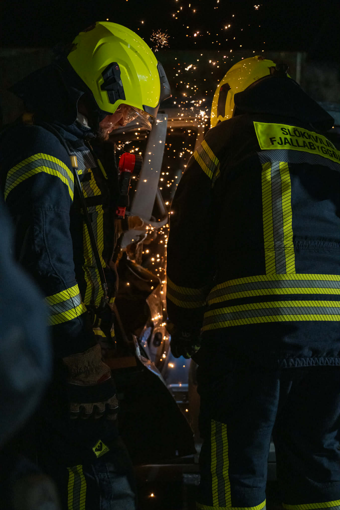 Slökkviliðsmenn í Slökkviliði Fjallabyggðar drógu fram klippubúnaðinn á mánaðarlegri æfingu slökkviliðsins í vikunni.