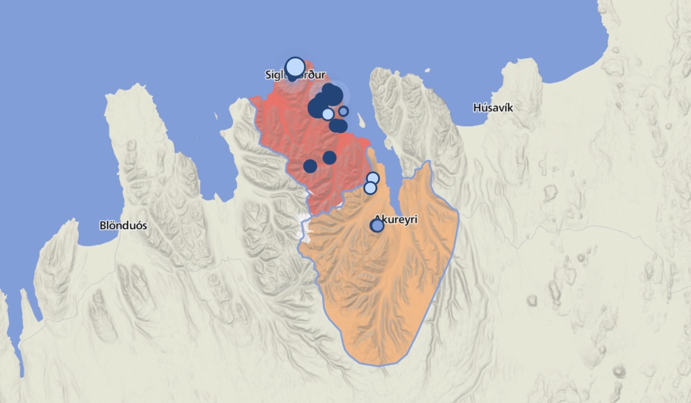 Það rann meðfram honum niður að garðsenda en stöðvaðist þó talsvert ofan þjóðvegar. Þarna eru snjóflóð algeng og var búist við að slíkt flóð gæti fallið nú eftir mikla snjókomu yst á Tröllaskaga undanfarna daga. Varað hefur verið við umferð fólks á þessu svæði síðan á fimmtudag, þar sem snjóflóð geta runnið langt út á undirlendið innan við bæinn meðfram varnargarðinum.