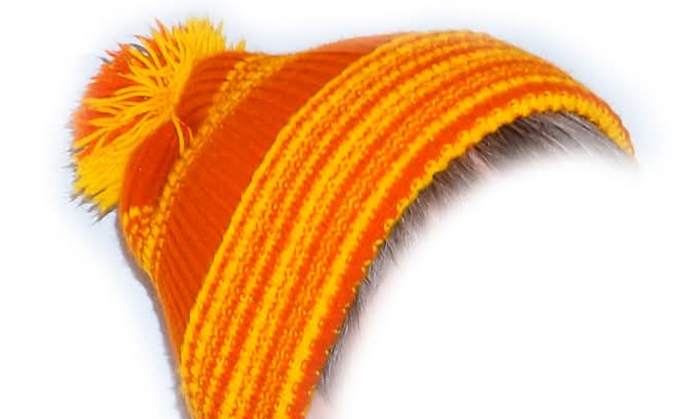 Við nánari athugun, varðandi sögu húfunnar kom í ljós að hún, ásamt eigandanum er margfaldur gönguskíða Íslandsmeistari og var á sínum tíma sérpöntuð hjá Nönnu, ásamt sokkum í sama skær appelsínugula stíl.