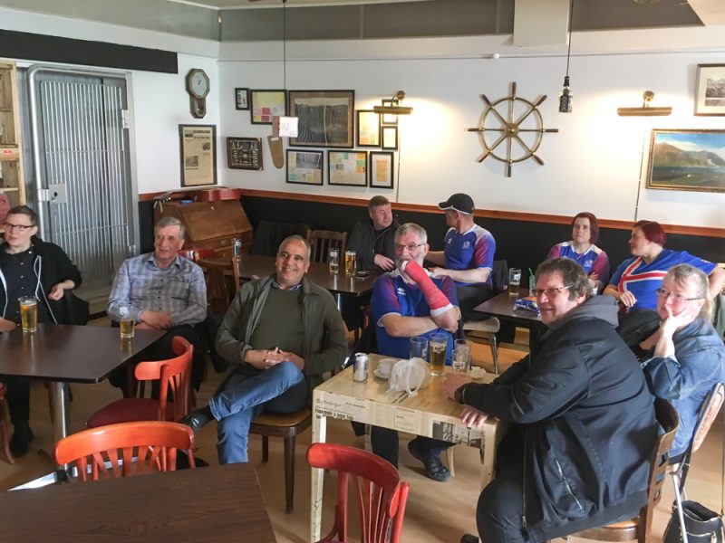 Um 15 – 20 manns voru saman komin hjá Hrólfi á Kveldúlfi til að horfa á leik Íslands og Argentínu og öll skemmtu sér konunglega.