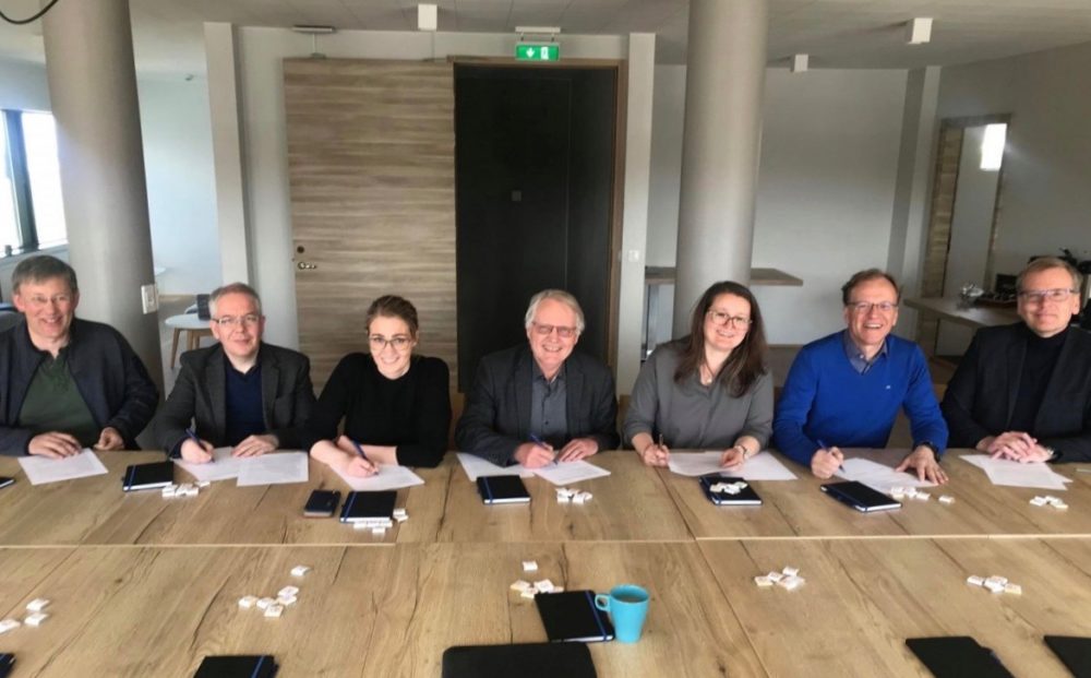 Á myndinni sjást formenn og/eða framkvæmdastjórar landshlutasamtakanna og Aðalsteinn Þorsteinsson forstjóri Byggðastofnunar undirrita samninga um þau verkefni sem hlutu stuðning í hverjum landshluta fyrir sig.