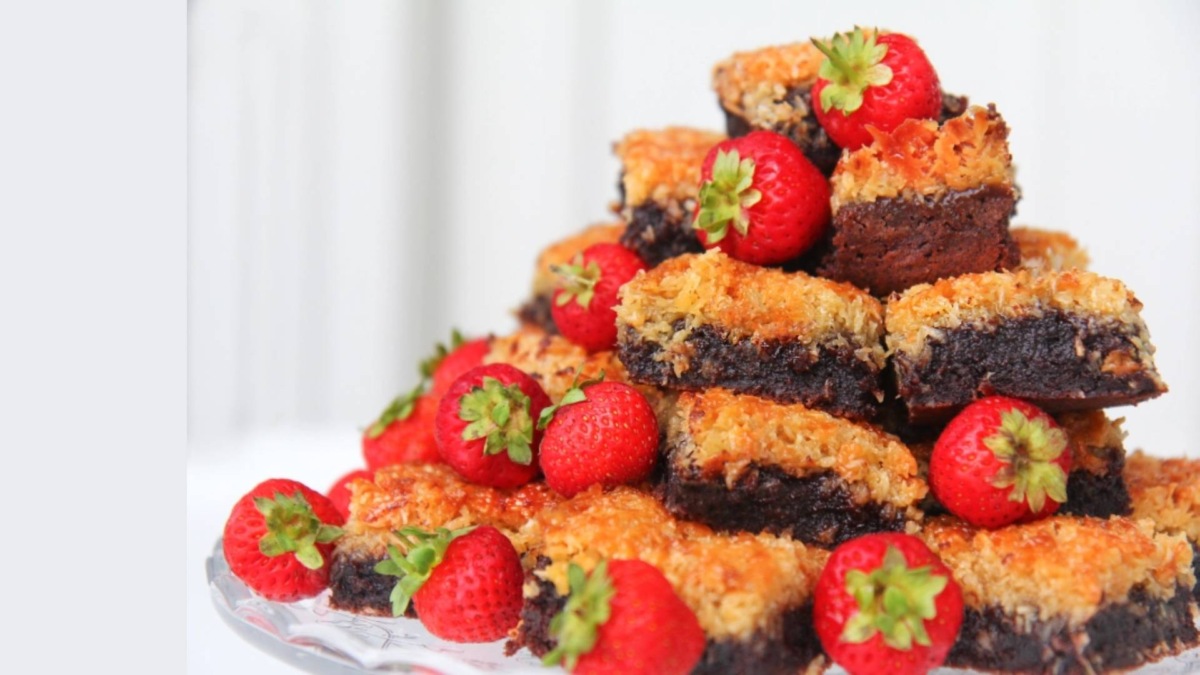 Á meðan kakan er í ofninum er ofanbráðin gerð. Setjið síróp, sykur, rjóma, smjör og kókosmjöl í pott við meðalháan hita. Látið smjörið bráðna og blandið vel saman. Sjóðið í 5 mínútur.