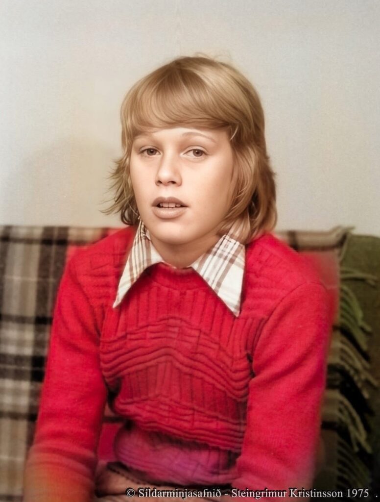 Þekkirðu þennan strák? Var að leika mér með að láta gervigreind setja lit á þessa gömlu svarthvítu mynd…