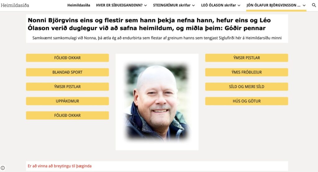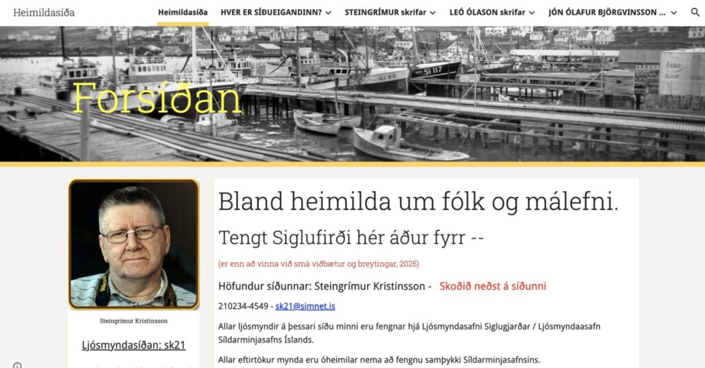 Í fyrra haust tilkynnti hann mér að hann ætlaði fara að vinna í því að færa mikið af mínum gömlu greinum frá bæði siglo.is og trölli.is yfir á heimildasíðuna sína. Ég var svona aðeins að vara hann við þessu mikla verkefni og að þetta tæki líklega mikinn tíma frá honum og mikið pláss á heimildasíðunni hans. Steingrímur svaraði um hæl, þetta er ekkert mál, ég er með 5 terabyte geymslurými og ég hef bara gaman af þessu grúski, þetta heldur mér lifandi.