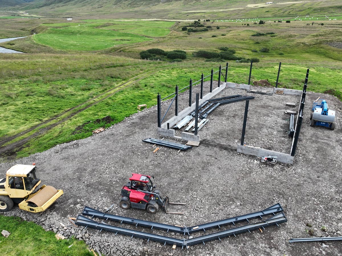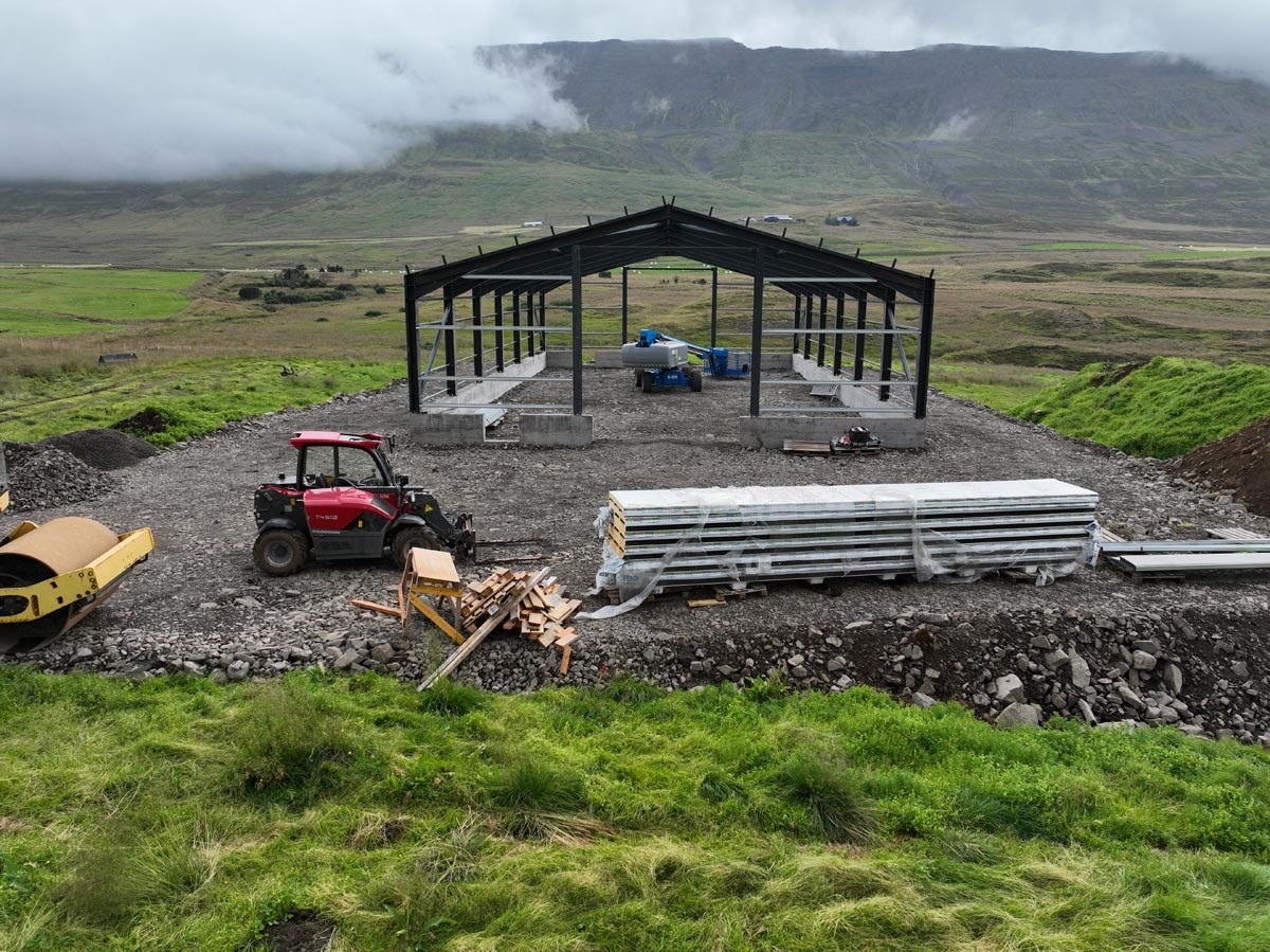 Nýja fjárhúsið er 352 fermetrar að flatarmáli og byggt sem svokallað yleiningahús með burðarvirki úr stálgrind. Þar verður hýst sauðfé og nokkrir nautgripir og að sögn Halldórs er sveigjanleiki hússins einn af helstu kostum þess.