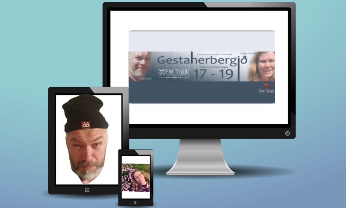 Helga og Palli, gestgjafarnir, munum opna Gestaherbergið upp á gátt kl 17 í dag og það verður opið til klukkan 19. Allir velkomnir inn að hlusta. Sent verður út í beinni útsendingu frá stúdíó III í Noregi.