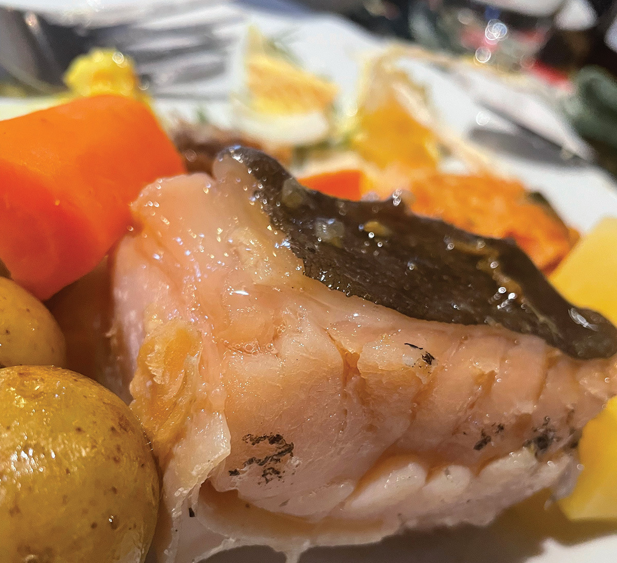Þá kom að sjálfri kæstu skötunni. Hér var enginn flækjustig, aðeins einn styrkleiki og það reyndist vel. Skatan var virkilega góð og reif vel í, eins og hún á að gera. Meðlætið stóð fyllilega undir aðalréttinum. Hamsatólg, kartöflur, rófur og gulrætur, allt meðlætið var eldað af mikilli natni, mjúkt að innan en hélt lögun og áferð vel og var hvergi of soðið.