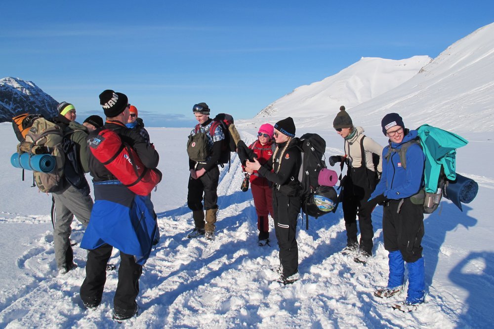 Hópur nemenda í áföngum um útivist í snjó og vetarfjallamennsku lá úti í Héðinsfirði um síðustu helgi. Í þessum hluta af náminu er tekist á við ýmsar áskoranir.