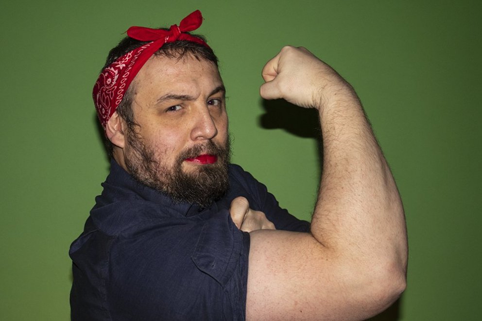 Tryggvi Hrólfsson kennari í ensku og sögu við Menntaskólann á Tröllaskaga var klæddur í sérstaka búninga og málaður í gær. Það gerðu nemendur og var athöfnin verðlaun fyrir virkni á önninni. Önnur uppáfærslan verður hluti af lokaverkefni þriggja nemenda í sögu á sýningu á verkum nemenda á laugardag. Viðfangsefnið er tíska og förðun kvenna á tuttugustu öld. Fyrirmyndin að hinu gervinu er sótt til leikritsins Ávaxtakörfunnar.