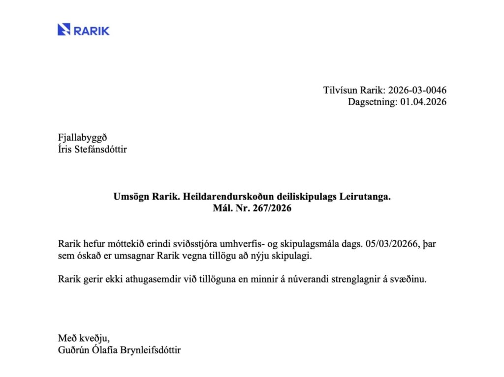 Umsögn Rarik vegna breytinga á Aðalskipulagi Fjallabyggðar 2020-2032 og endurskoðun á deiliskipulagi Leirutanga.
