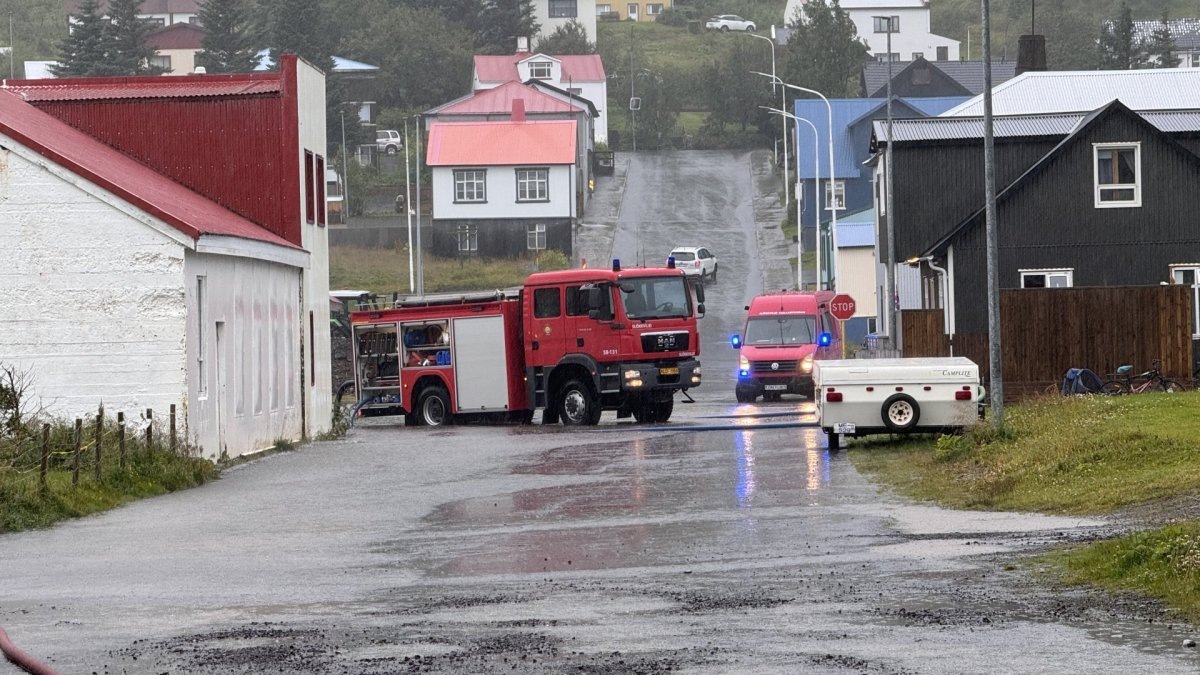Tvær dælubifreiðar Slökkviliðs Fjallabyggðar eru að dæla vatni upp úr fráveitukerfinu ásamt því sem allar lausar dælur eru notaðar. Einnig eru komnir tveir dælubílar frá Akureyri og þriðji á leiðinni. Þá mun berast meiri aðstoð bæði frá Akureyri og Dalvík á næstunni. Einnig eru byrjaðir að fyllast brunnar við Eyrarflöt syðst í bænum. Þar eru dælur í fráveitukerfinu sem því miður hafa ekki undan þessu mikla vatnsmagni.