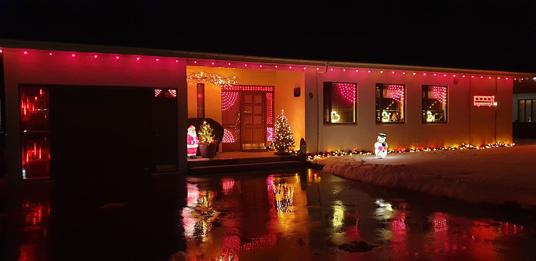 Einstaklega vel vandað til verks og mikil natni við gluggaseríur. Rútan á húsinu, virkilega flott og frumleg. Mikið og fallega skreytt í skoti við innganginn. Skemmtilegt og bjartsýnt greni með seríu á jörðinni við húsið. Stílhreint, frumlegt og skemmtilegt í heildina.