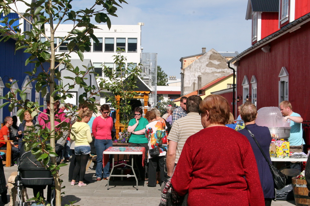 Útimarkaður var haldinn á Rauðkutorgi laugardaginn 4. ágúst í blíðskaparveðri 17 gráðu hita. Fjölmenni sótti markaðinn sem var á mörgum borðum. Það er ljóst að margir hafa gaman af að versla við svona aðstæður.