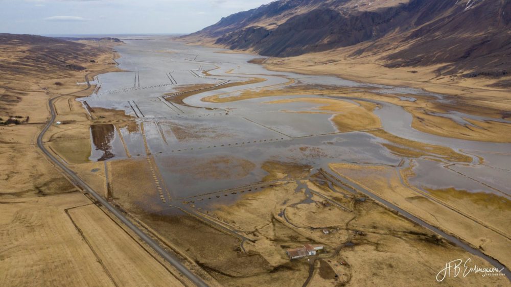 Í gær fór Höskuldur B. Erlingsson inn í Vatnsdal með flygildi sitt og tók meðfylgjandi myndir sem sýna að vatn flæddi yfir tún og engi í neðri hluta dalsins.