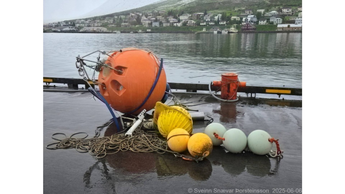 Í óveðrinu síðustu daga rak veðurdufl inn Siglufjörð og strandaði í Hvanneyrarkrók.