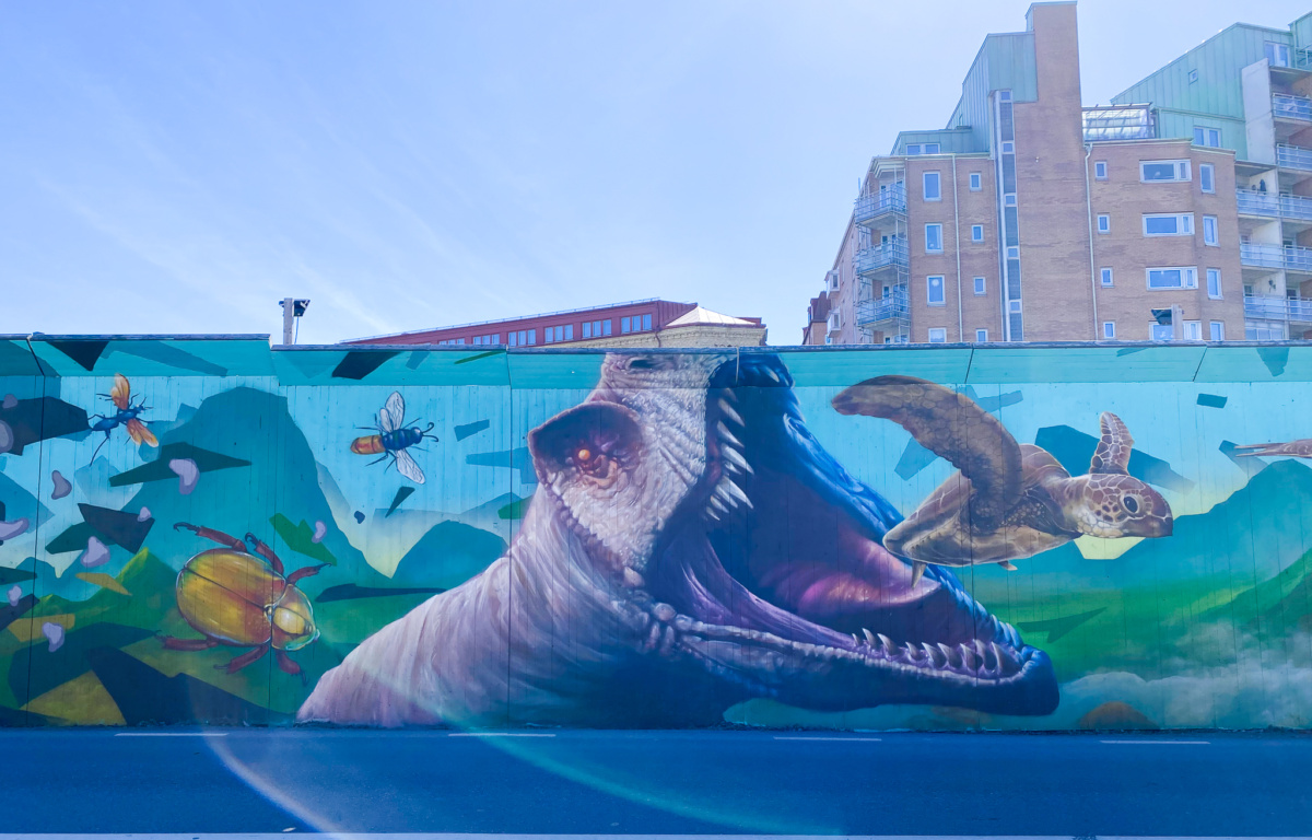 Gautaborgarar eru húmoristar og góðir í orðaleikjabröndurum og ein brúarflækjan var strax nefnd “Rauði ormurinn” og Trafikveket (Vegagerð Ríkisins) reynir að létta lund okkar borgarbúa með því að gefa okkur eitthvað fallegt að horfa á í formi listaverka á stórum og háum girðingamúr sem umlykur t.d. eitt af mörgum framkvæmdasvæðunum í miðborginni.