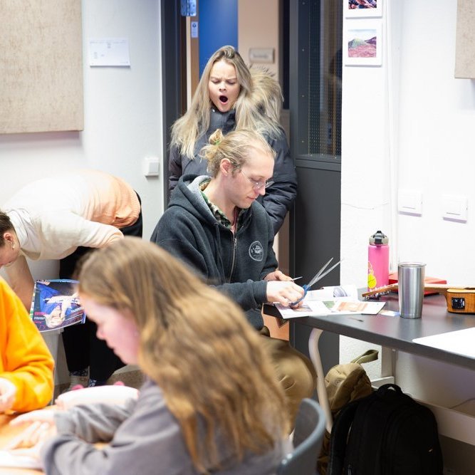Afrakstur vinnunnar í gær verður sýndur í Listhúsinu á laugardaginn kemur og verður sýningin opnuð klukkan átján. Þá er fyrirhugað að nemendur í Listrænni sköpun haldi áfram að vinna með smárit og færi sig yfir í bókverk í næstu viku. Skoða Myndir